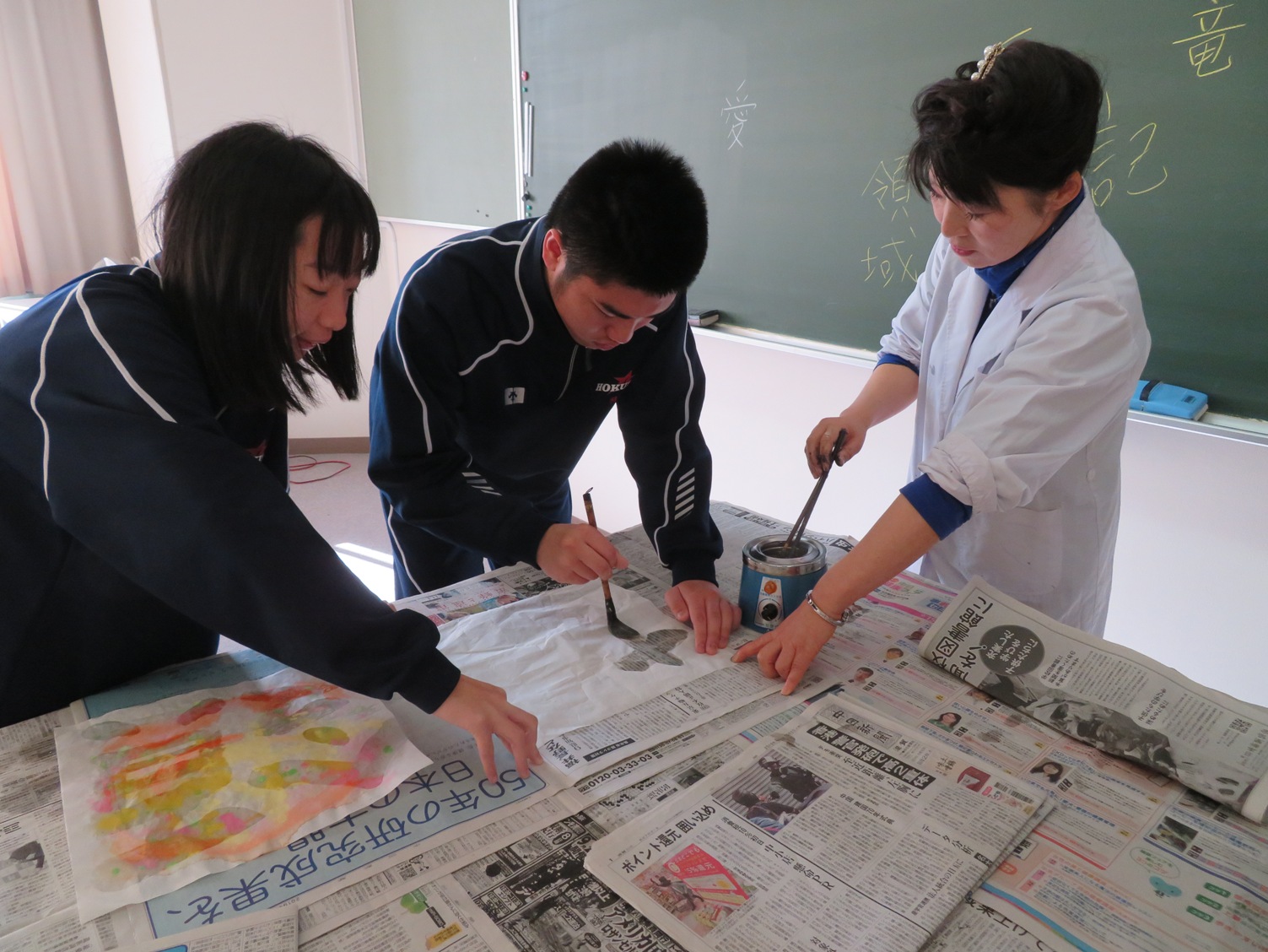 墨ではなく、筆にたっぷり蝋をつけて書くものが蝋書き。